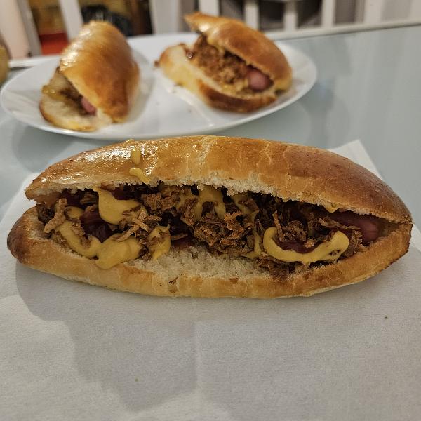 Iar la umplutură și montarea hotdog-ului efectiv vă puteți desfășura - simplu și repede cu niște ketchup/muștar, sau în plus cu castraveciori murați, ceapă caramelizată, verdeață, etc. Da, și nu uitați crenvurștii să-i rumeniți neapărat în puțin ulei la tigaie :)